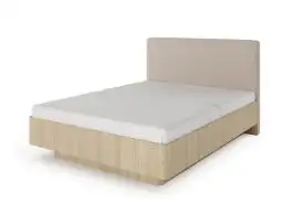 Doppelbett / Gästebett Bouzid 04 | Farbe: Eiche Barista | gepolstertes Kopfteil | Liegefläche: 160 x 200 cm | Bettkasten für Bettwäsche