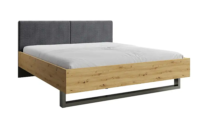 Doppelbett / Gästebett Dionysos 03, gepolstertes Kopfteil, Farbe: Eiche Artisan / Graphitgrau, ABS-Kantenschutz, Liegefläche: 160 x 200 cm, Beine: Metall