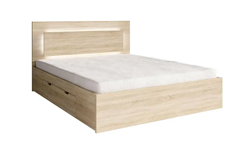 Doppelbett / Gästebett mit Bettschublade Almopia 05, Farbe: Eiche Sonoma, inklusive LED-Beleuchtung, Liegefläche: 160 x 200 cm, gut kombinierbar