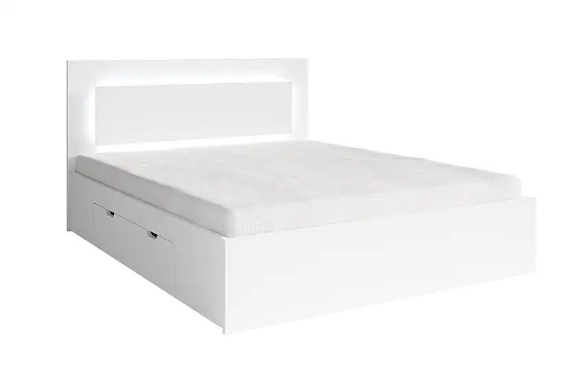 Doppelbett / Gästebett mit Bettschublade Almopia 05, Farbe: Weiß, inklusive LED-Beleuchtung, Liegefläche: 160 x 200 cm, gut kombinierbar