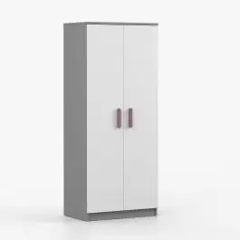 Drehtürenschrank / Kleiderschrank Weiß / Grau | Smolikas 62 | 192 x 80 x 50 cm | 2 Türen | 1 Kleiderstange | 5 Fächer | violette Holzgriffe