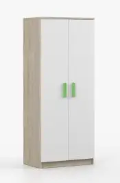 Drehtürenschrank / Kleiderschrank Weiß / Sonoma Eiche | Smolikas 52 | 192 x 50 x 80 cm | 2 Türen | Kleiderstange | 5 Fächer | grüne Holzgriffe rund