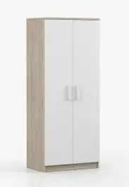 Drehtürenschrank / Kleiderschrank Weiß / Sonoma Eiche | Smolikas 57 | 192 x 80 x 50 cm | 2 Türen | 5 Fächer | Kleiderstange | runde weiße Holzgriffe
