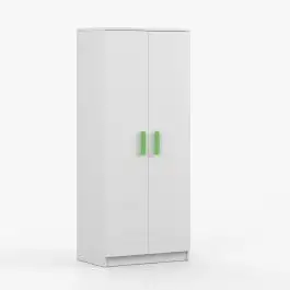 Kleiderschrank / Drehtürenschrank | Smolikas 68 | Weiß | 2 Türen | 192 x 80 x 50 cm | 5 Fächer | grüne Holzgriffe | 1 Kleiderstange | eckig