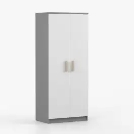 Kleiderschrank / Drehtürenschrank | Smolikas 63 | Weiß / Grau | 2 Türen | 192 x 80 x 50 cm | braune Holzgriffe | 5 Fächer | 1 Kleiderstange