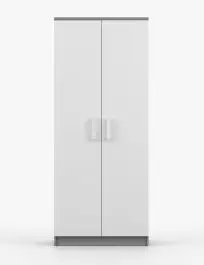 Kleiderschrank / Drehtürenschrank | Weiß / Grau | Smolikas 65 | 2 Türen | weiße Holzgriffe | 5 Fächer | 1 Kleiderstange | 192 x 80 x 50 cm