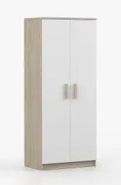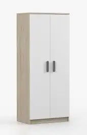 Kleiderschrank / Drehtürenschrank | Weiß / Sonoma Eiche | Smolikas 56 | 2 Türen | 192 x 80 x 50 cm | graue Holzgriffe | 5 Fächer | Kleiderstange