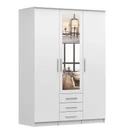 Kleiderschrank / Drehtürenschrank | Weiß | Kopaonik 03 | mit Spiegel | 3 Schubladen | 3 Türen | 6 Fächer | 507 x 151 x 59 cm | 2 Kleiderstangen