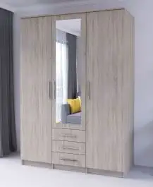 Kleiderschrank / Drehtürenschrank | Sonoma Eiche | Kopaonik 04 | mit Spiegel | 3 Schubladen | 3 Türen |Kleiderstange | 507 x 151 x 59 cm | 6 Fächer