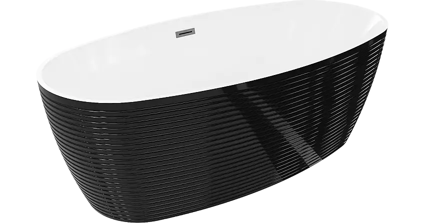 Mexen Lira freistehende Badewanne Muster 170 x 80 cm, weiß/schwarz, Überlauf gun metal – 52831708075-95