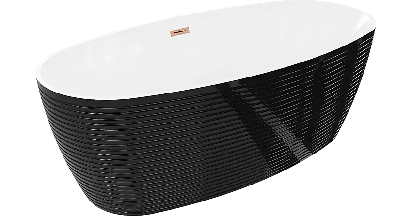 • Mexen Lira freistehende Badewanne Muster 170 x 80 cm, weiß/schwarz, Überlauf Kupfer gebürstet - 52831708075-65