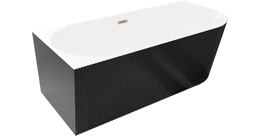 • Mexen Silo freistehende, linke Eckbadewanne geriffelt 170 x 80 cm, weiß/schwarz, Überlauf gebürstetes Kupfer - 52891708075L-65