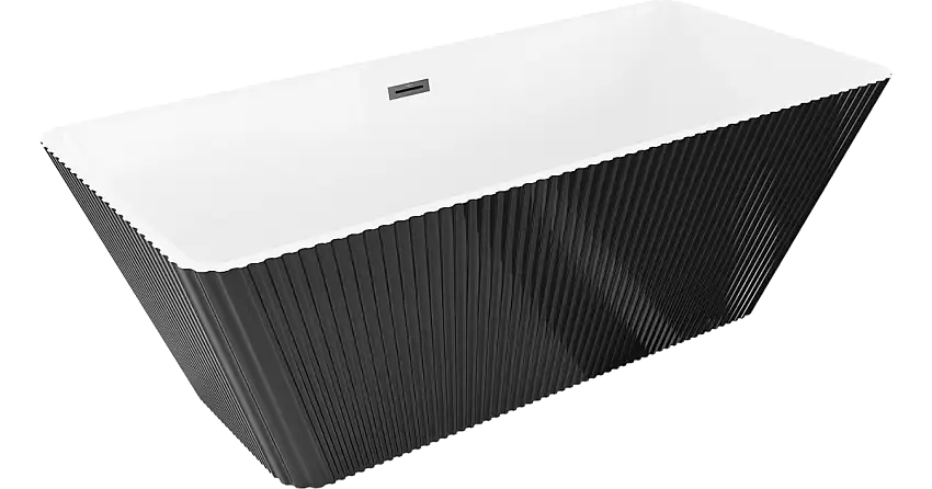 Mexen Tava freistehende geriffelte Badewanne 170 x 75 cm, weiß/schwarz, Überlauf Gun Metal – 52851707575-95