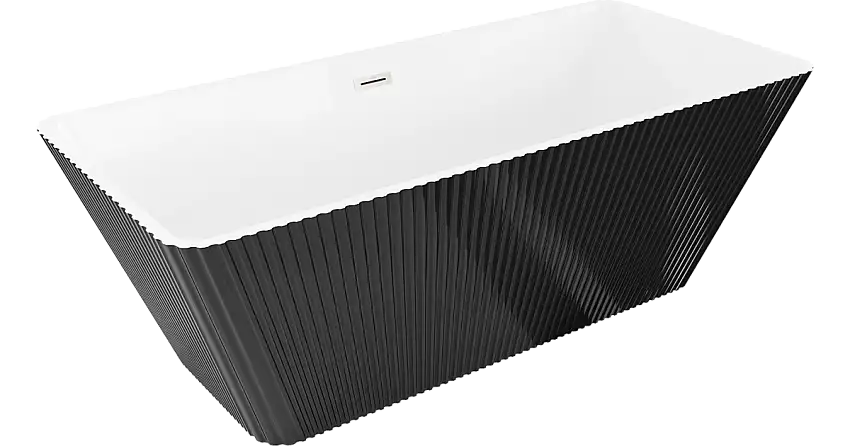 Mexen Tava freistehende geriffelte Badewanne 170 x 75 cm, weiß/schwarz, schwarzer Überlauf – 52851707575-70
