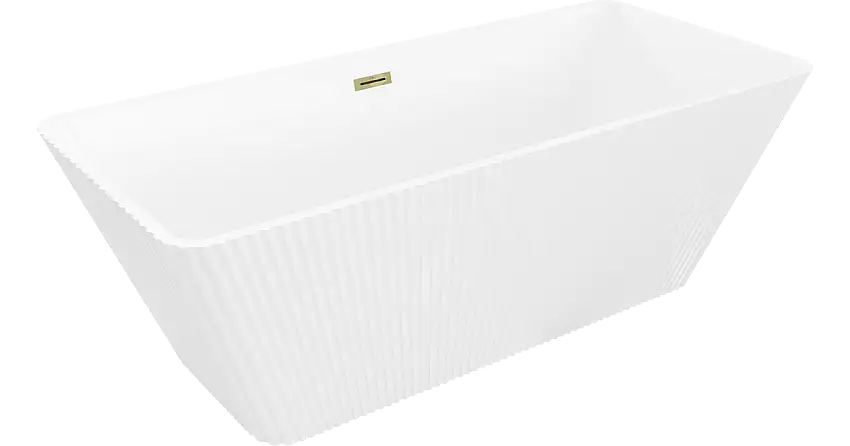 Mexen Tava freistehende geriffelte Badewanne 170 x 75 cm, weiß, Überlauf gold – 52851707500-50