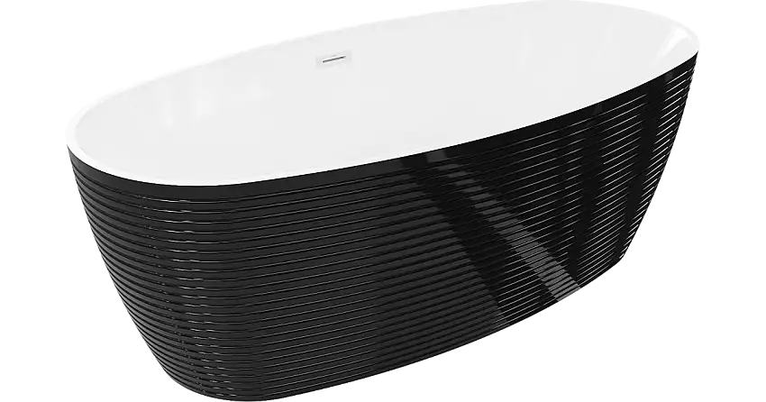 Mexen Nila freistehende geriffelte Badewanne 170 x 75 cm, weiß, Überlauf schwarz – 52841708000-70