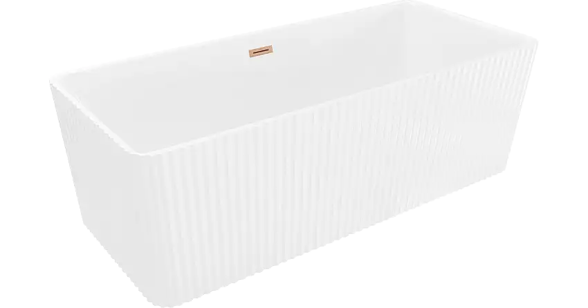 Mexen Nila freistehende geriffelte Badewanne 170 x 75 cm, weiß, Überlauf gebürstetes Kupfer – 52841708000-65