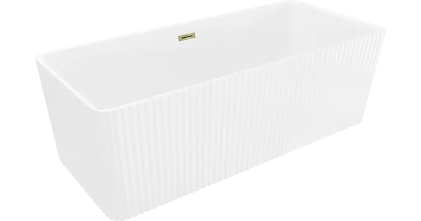 Mexen Nila freistehende geriffelte Badewanne 170 x 75 cm, weiß, Überlauf gold – 52841708000-50