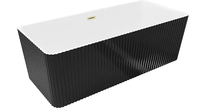 • Mexen Nila freistehende geriffelte Badewanne 170 x 75 cm, weiß/schwarz, Überlauf gold - 52841708075-50