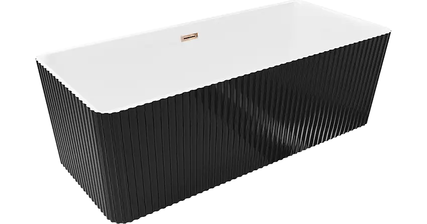 Mexen Nila freistehende gerillte Badewanne 170 x 75 cm, weiß/schwarz, Überlauf Roségold – 52841708075-60