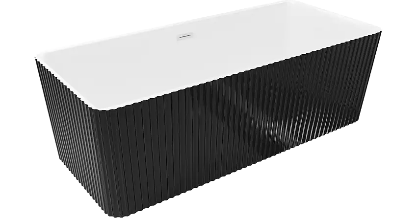 Mexen Nila freistehende geriffelte Badewanne 170 x 75 cm, weiß/schwarz, Überlauf schwarz – 52841708075-70