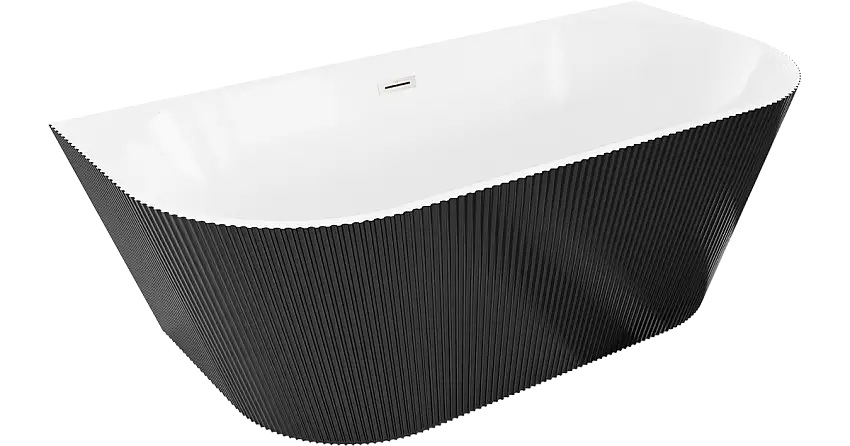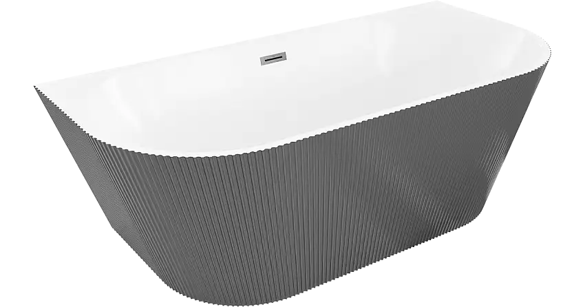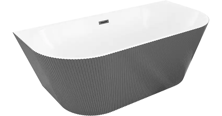 Aktion!Mexen Oris freistehende geriffelte Badewanne 170 x 80 cm, weiß/grau, schwarzer Überlauf – 52871708062-70