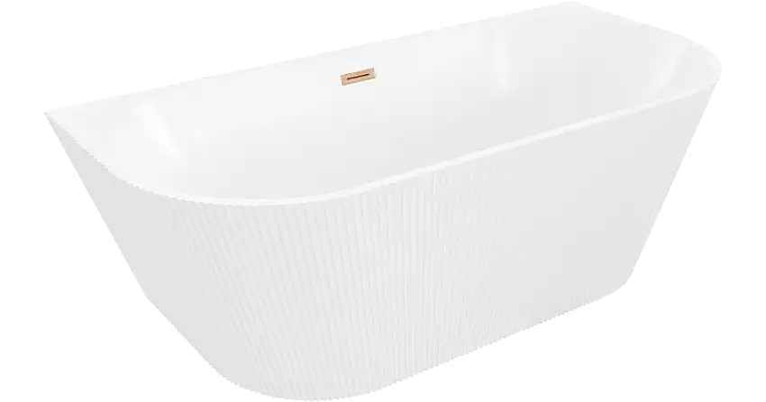 Aktion!Mexen Oris freistehende geriffelte Wandbadewanne 150 x 75 cm, weiß, Überlauf Roségold – 52871507500-60