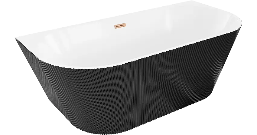Aktion!Mexen Oris freistehende geriffelte Rückwandwanne 150 x 75 cm, weiß/schwarz, Überlauf gebürstetes Kupfer – 52871507575-65