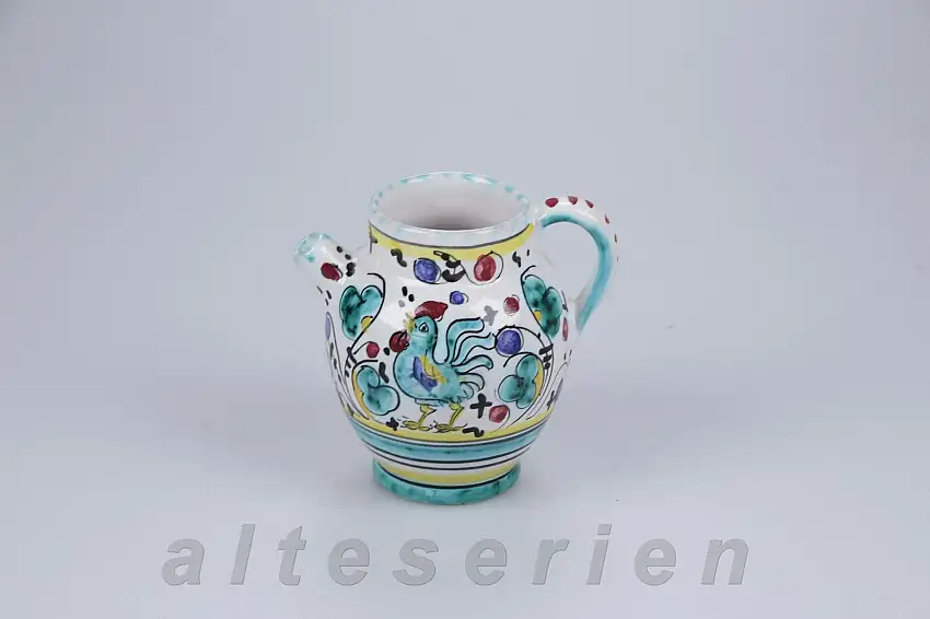 • Essigkännchen Ölkännchen - Italienische Majolika Deruta Grüner Hahn