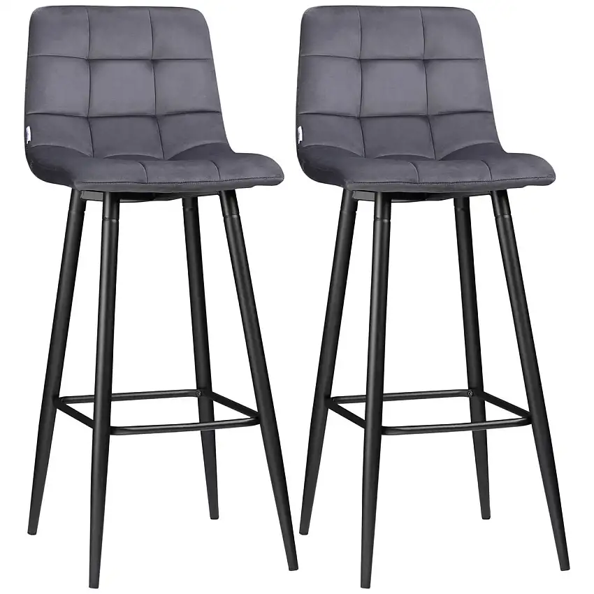 • 2er-Set Barhocker mit Fußstütze Barstühle Bezug aus Samt für Wohnzimmer