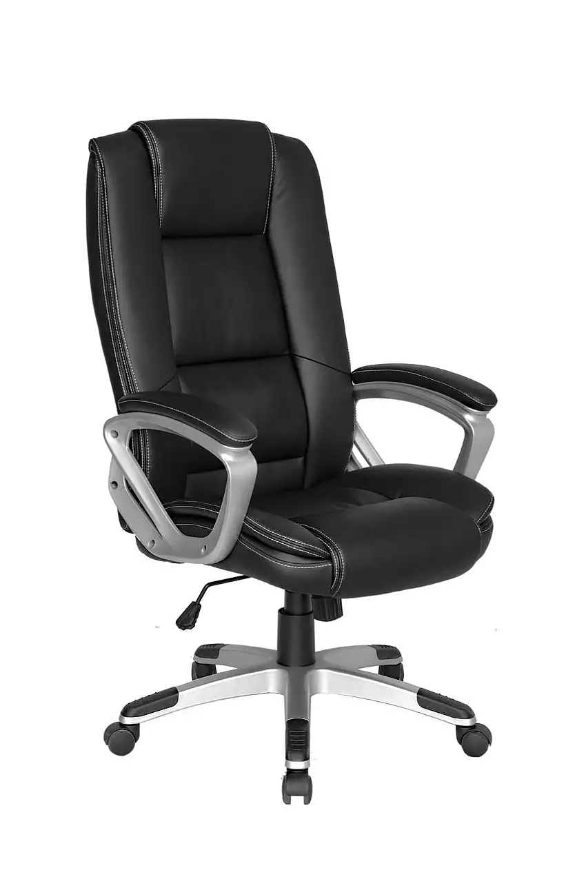 DEREK-XXL Chefsessel, Kunststoff silberfarben, Kunstleder schwarz