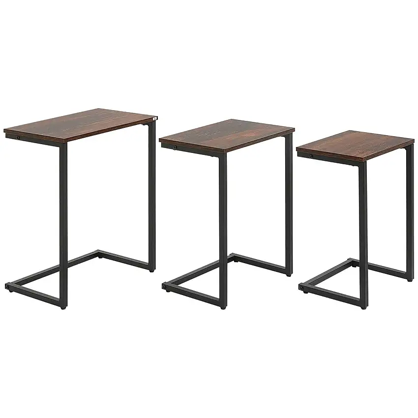 Aktion!3er-Set Beistelltische platzsparende Satztische mit Stahlgestell Braun