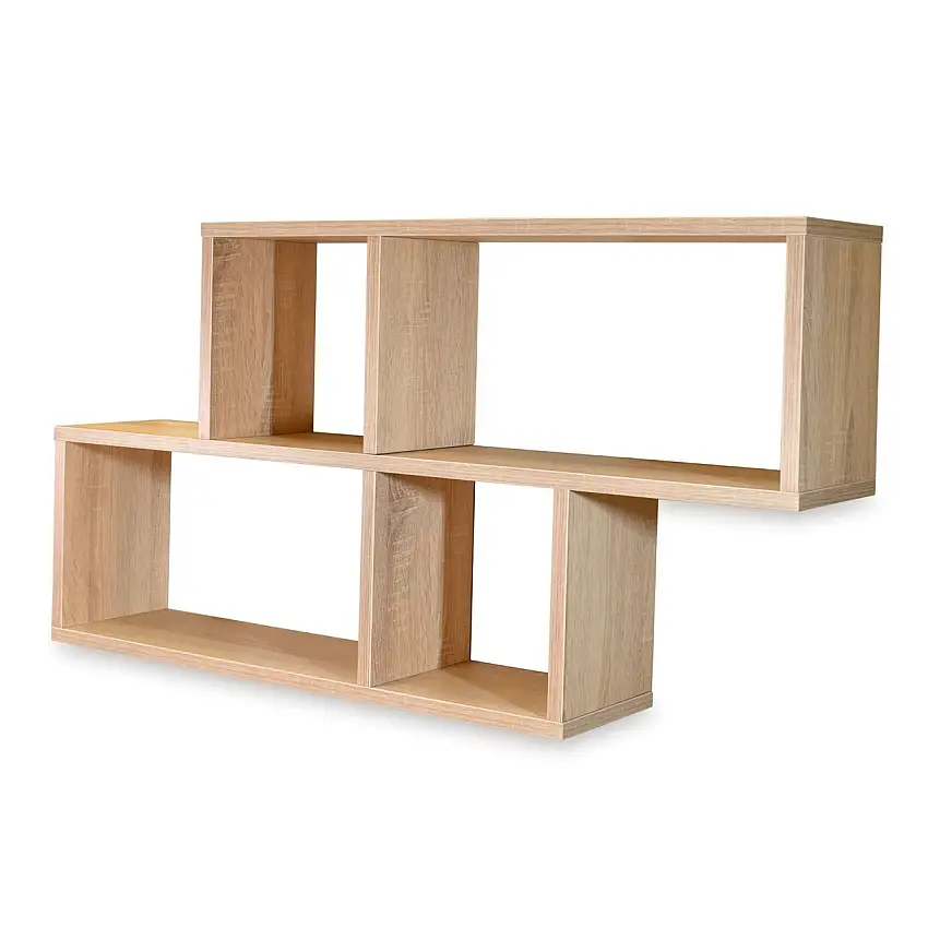 Wandregal Ernie 100 x 20 x 53 cm aus Holz MDF, 4 Fächer vertikal versetzt Natur