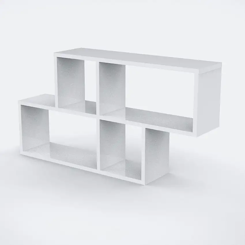 Wandregal Ernie 100 x 20 x 53 cm aus Holz MDF, 4 Fächer vertikal versetzt Weiß
