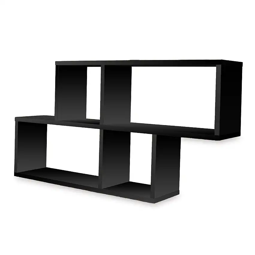 Wandregal Ernie 100 x 20 x 53 cm aus Holz MDF, 4 Fächer vertikal versetzt Schwarz