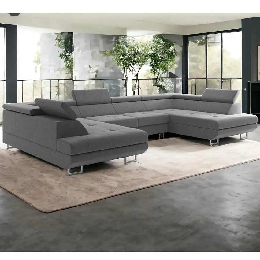 Aktion!Wohnlandschaft Monaco in U Form mit Ottomane und Bettkasten, ca. 342 x 202 x 77-99 cm – Grau