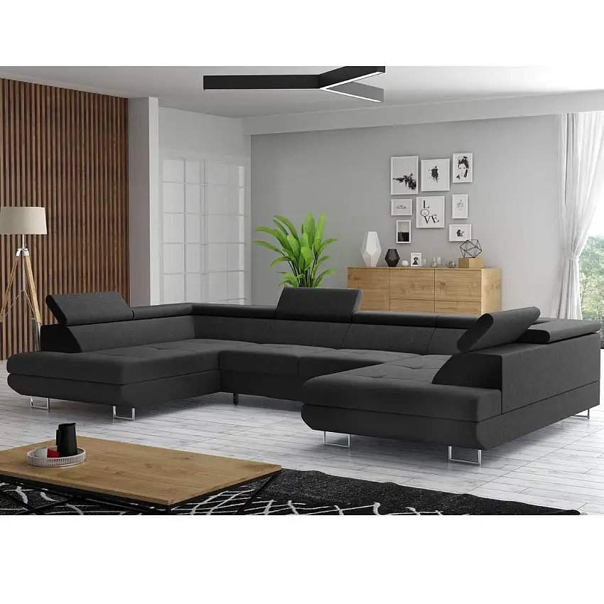 Aktion!Wohnlandschaft Monaco in U Form mit Ottomane und Bettkasten, ca. 342 x 202 x 77-99 cm – Schwarz