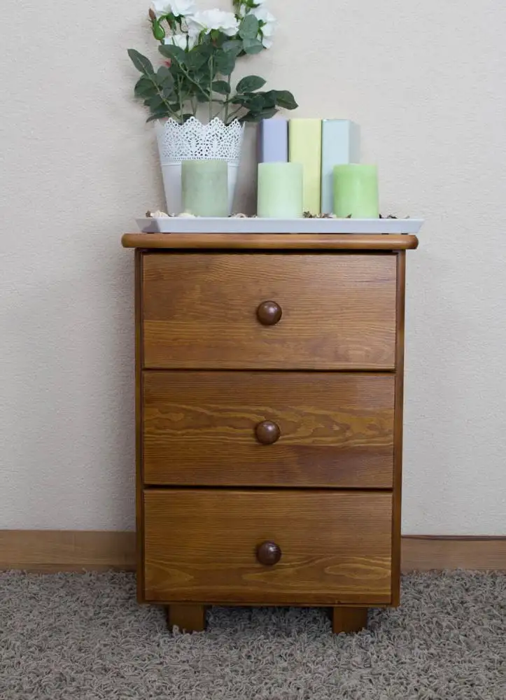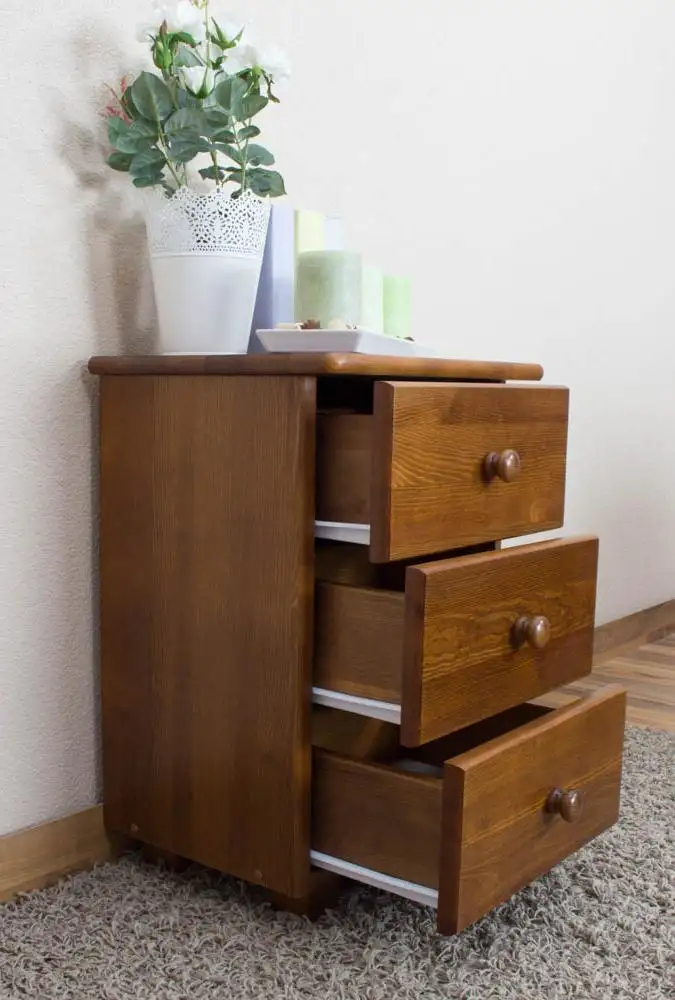 Nachtkommode Eiche 60x43x33 (HxBxT) Kiefer massiv, 3 Schublade(n)