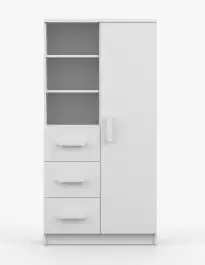 50 cm breites Bücherregal / offenes Regal | Mattweiß | Smolikas 01 | 6 Fächer | 192 x 50 x 40 cm | Drehtür | 3 Schubladen | Kinder | Jugend