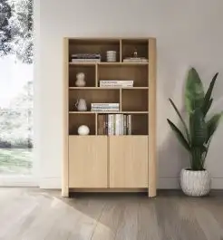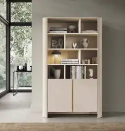 Bücherregal | Kaschmir | Vytgarth 07 | 170 x 103 x 39 cm | 2 Türen | 12 Fächer | griffloses Design | Push-to-Open | moderner Stil | geräumiges Regal