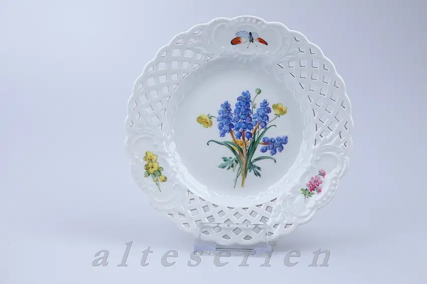 Durchbruchteller Knaufzeit Glockenblume mit Insekt I.Wahl – Meissen Blumenmotive