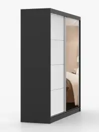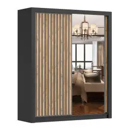 Aktion!2,0 Meter breiter Kleiderschrank / Schiebetürenschrank | Grau / Schwarz | Voras 20 | mit Spiegel | 2 Türen | Kleiderstange | reichlich Stauraum