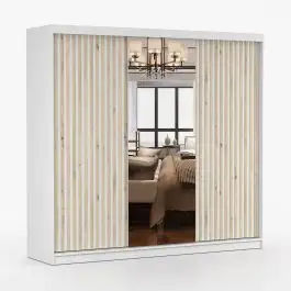 Aktion!2,5 Meter breiter Kleiderschrank / Schiebetürenschrank mit Spiegel Eiche / Weiß | Cevennen 10 | 218 x 250 x 61 cm | 3 Türen | 12 Fächer | Holzoptik