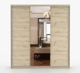 Kleiderschrank / Schiebetürenschrank | Sredna 14 | Artisan / Sonoma Eiche | mit Spiegel | 3 Türen | 7 Fächer | 3 Schubladen | 218 x 203 x 61 cm