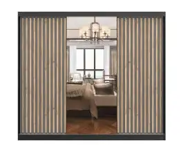 Kleiderschrank / Schiebetürenschrank | Voras 28 | Grau / Schwarz | Spiegel | 2 Türen | 8 Fächer | 250 x 215 x 61 cm | Kleiderstange | 3 Schublade