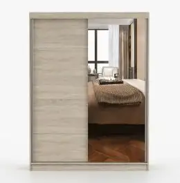 Kleiderschrank / Schiebetürenschrank | Sonoma Eiche | Bucegi 23 | mit Spiegel | 2 Türen | Griffe: Aluminium | 6 Fächer | 200 x 150 x 61 cm