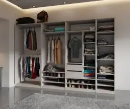 Schrankset für Ankleidezimmer – Set B Cabecao | 5-teilig | Farbe: Kaschmir | offener Kleiderschrank | 2 Schubladen | kompakt | 4 Kleiderstangen