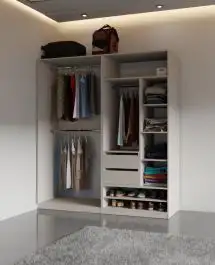 • Schrankset für Ankleidezimmer - Set B Cabecao | 5-teilig | Farbe: Kaschmir | offener Kleiderschrank | 2 Schubladen | kompakt | 4 Kleiderstangen