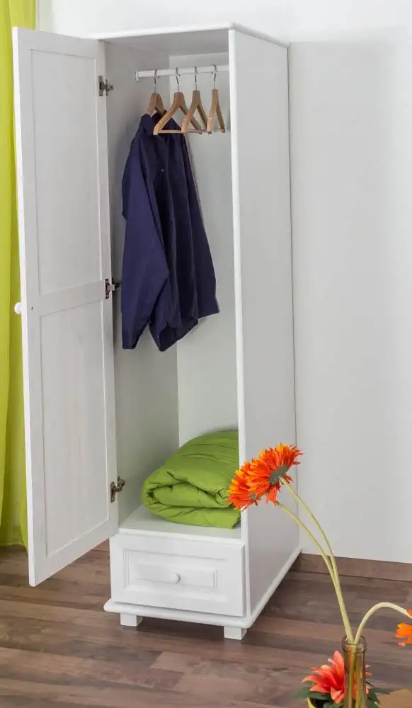 Aktion!Schlafzimmer-Schrank Kiefer massiv Weiß 195x45x42 cm