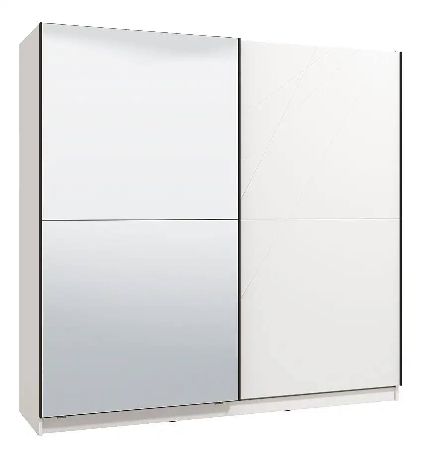 • Schwebetürenschrank Bogati 02, eine Spiegeltür, zwei Kleiderstangen, Farbe: Weiß / Weiß Hochglanz, Maße: 210 x 217 x 62,5 cm, für Schlafzimmer